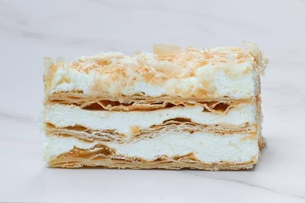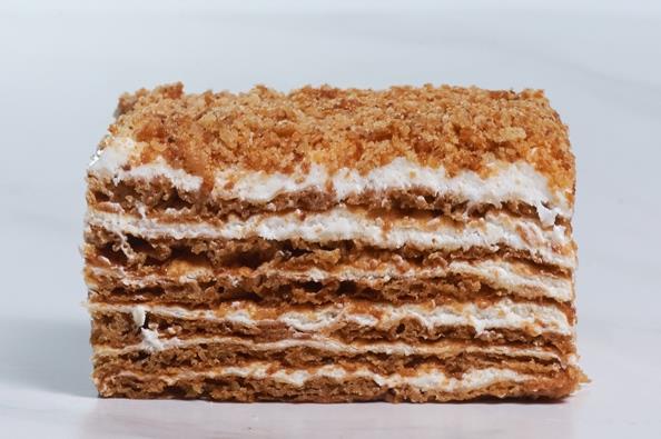 Коржи из слоеного теста, пропитанные кремом из вареного сгущеного молока.