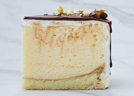 Воздушное суфле на тонком бисквитном корже под тонким слоем шоколада.